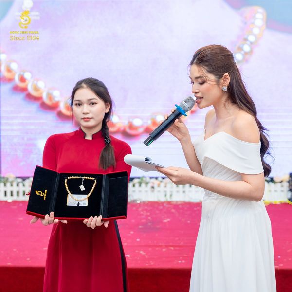 Trong khuôn khổ chương trình, đêm gala đặc biệt đã tạo dấu ấn với nhiều hoạt động ý nghĩa, nổi bật là phiên đấu giá. Ngoc Hien Pearl vinh dự góp mặt với chuỗi cổ ngọc trai Akoya 3A, sản phẩm thuộc phân khúc trang sức cao cấp, có giá trị niêm yết 34 triệu đồng.